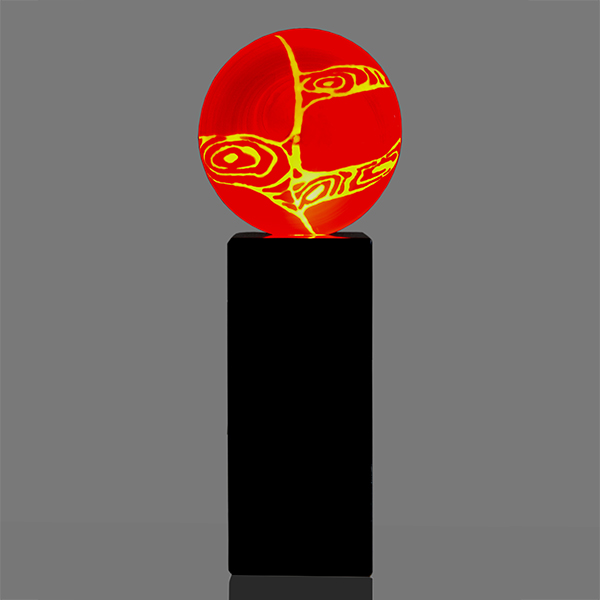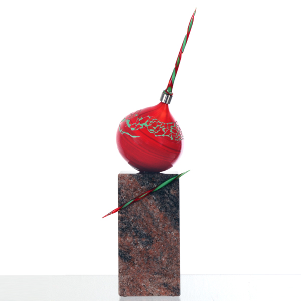 Kopf aus Glasstäben frei geformt, auf polierten Glasblock, Dekor sandgestrahlt
